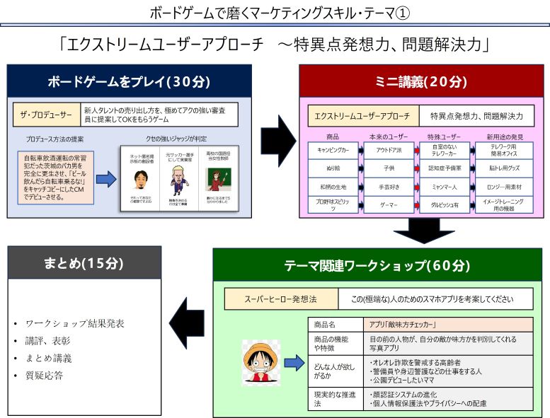 | テーマ | テーマ別研究会ボードゲームで磨くマーケティングスキル Day1の参加 | |